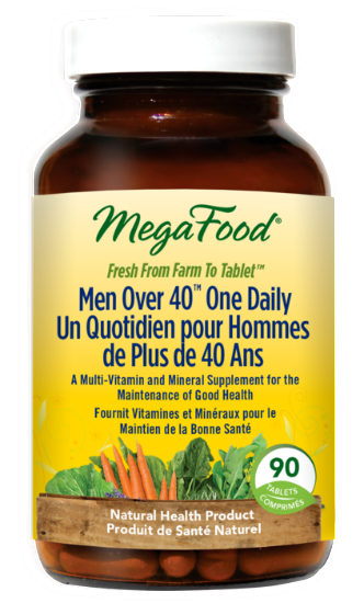 MegaFood Men Over 40 One Daily is specifically formulated without iron to support the health and wellbeing of men over the age of 40. (Iron is not recommended for men unless specifically directed by their healthcare practitioner.) The multi nourishes the body in a convenient, once-daily tablet that can be taken with or without food, and includes FoodState B vitamins to assist with already healthy cardiovascular function, healthy energy production and nervous system health.Features