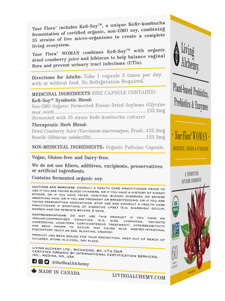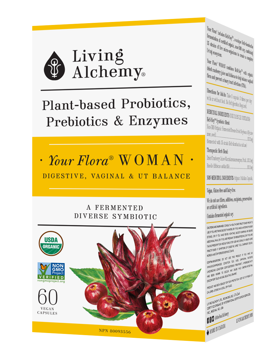 Expertly formulated, Living Alchemy Your Flora WOMAN is a fermented, whole food Symbiotic that promotes a healthy vaginal balance and helps prevent acute and recurring UTIs.